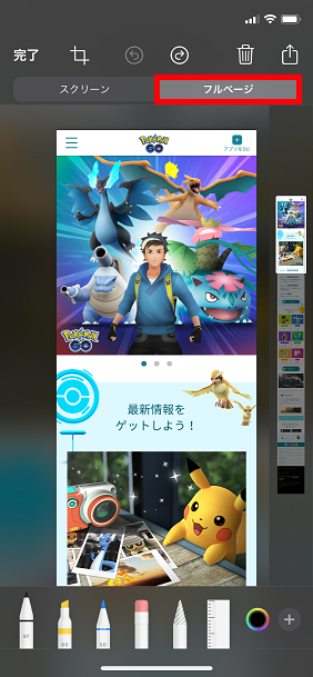 スクリーンショットを加工するためのソフトが起動するので、上部の「フルページ」タブを選択します。