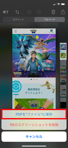 これでページ全体のスクリーンショットがPDFファイルとして保存されます。