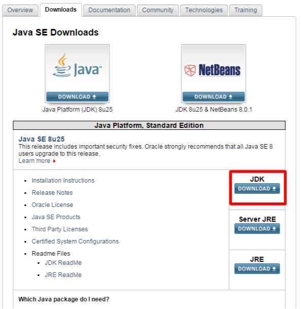 JDK「DOWNLOAD」と書かれたボタンをクリックします。