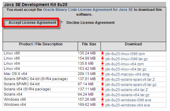 「Accept License Agreement」のライセンス確認のチェックを入れないとダウンロードできないのでチェックします。