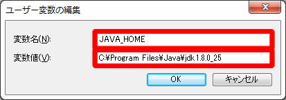 変数値:JDKをインストールしたパス
